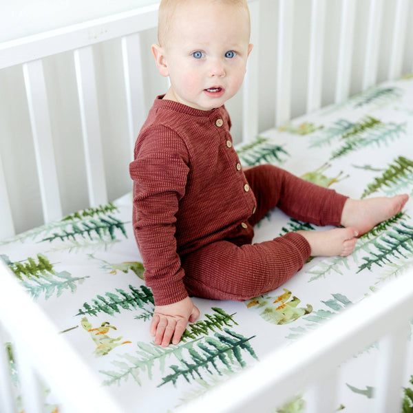 These buttery soft crib sheets are going to make you want to get one for yourself! 😊 Our own unique prints that you don't see everywhere. Details: Our crib sheets fit a standard size crib and measure around 52 x 28 x 9 inches. Fabric: 95% Rayon + 5% Spandex Machine wash cold and tumble dry at low heat. Each sheet is packaged in a polybag.