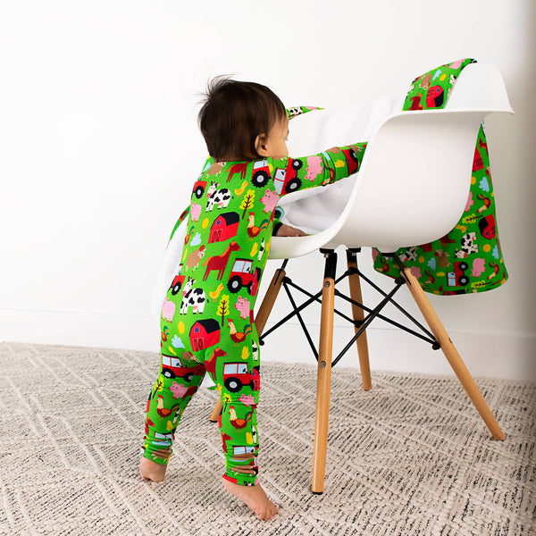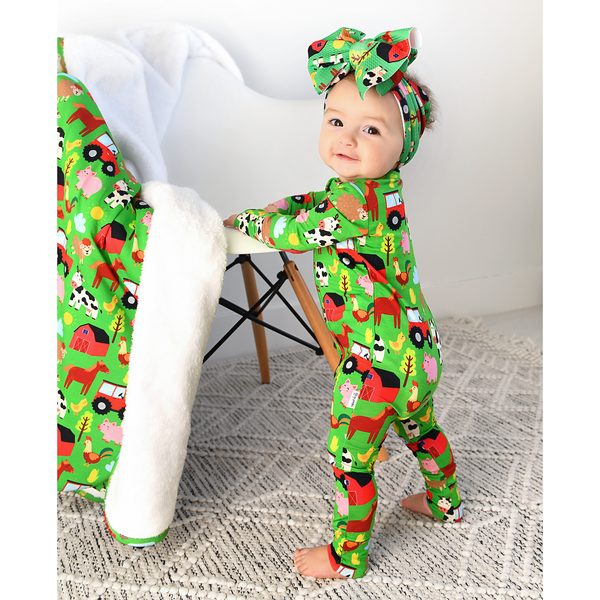 Tanner Zip Bamboo Baby Farm Animal Going Home Outfit