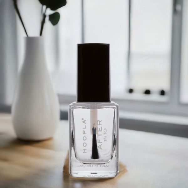 HOOPLA® AFTER is a 10+Free top coat that provides the ultimate gel-hybrid finish. AFTER dries to the touch in minutes! The results are a longer lasting shine and color hold.