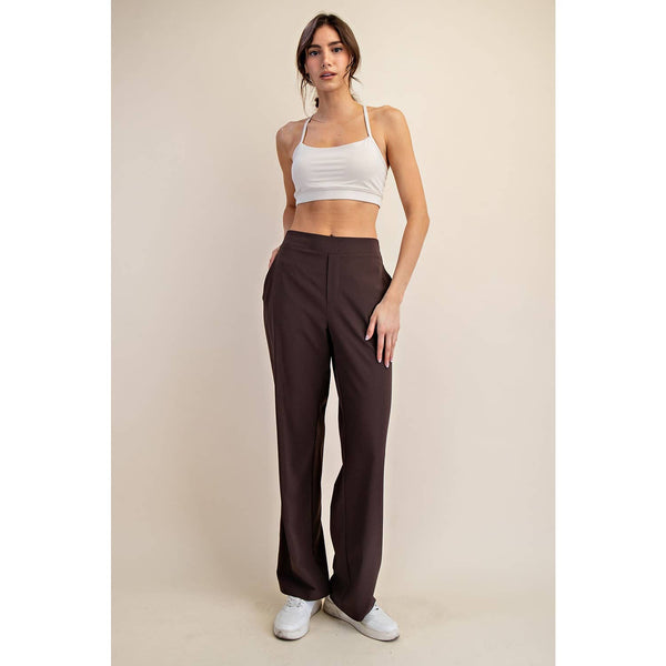CRINKLE WOVEN STRAIGHT TROUSER - Espresso