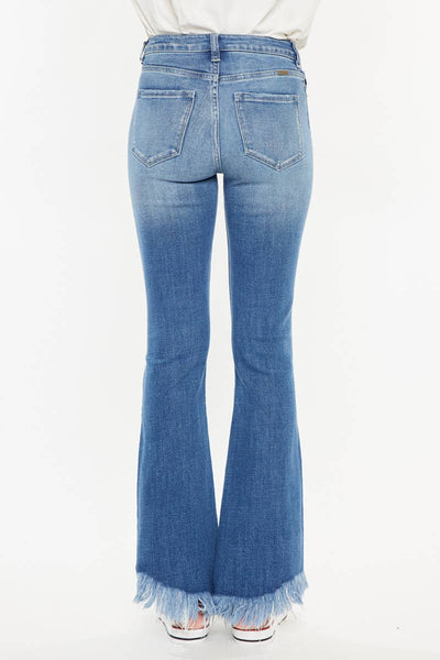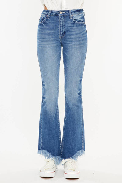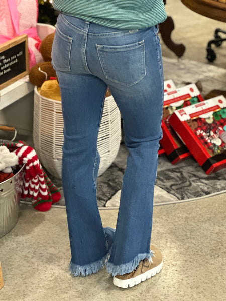 HIGH RISE STRETCH WIDE LEG W/ DESTROYED HEM JEANS
