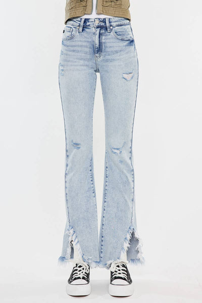 HIGH RISE STRETCH WIDE LEG W/ DESTROYED HEM JEANS
