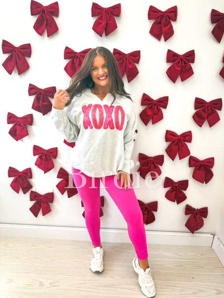 XOXO Split Neck Graphic Crewneck on Ash Gray