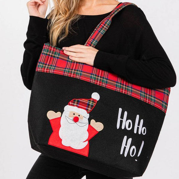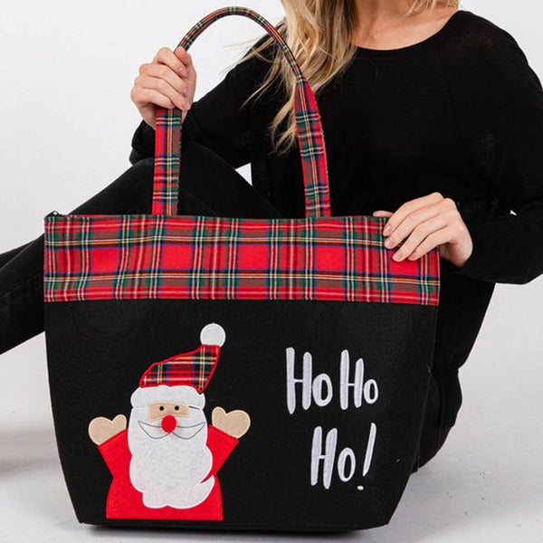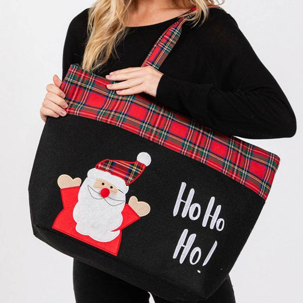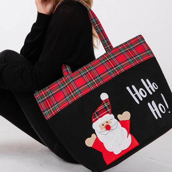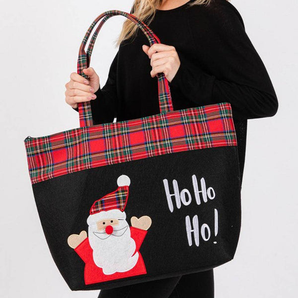 * Ho Ho Ho Letter Santa Christmas Tote Bag * SIZE : 19"X13"X6". * CONTENTS : 100% POLYESTER. * Introducing the "Ho Ho Ho Letter Santa Christmas Tote Bag" from H&D Accessories – a stylish black and red plaid bag that perfectly captures the festive spirit. With its cheerful "Ho Ho Ho" message, this tote is not just a bag, it's a statement piece for your Christmas celebrations. Elevate your holiday style with this tote bag and make every outing a joyful occasion!