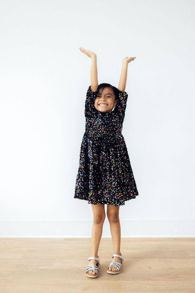 Our sequin dress is sure to make your little one feel like a star. It is the perfect choice for creating magical moments and unforgettable memories. Perfect for birthdays, weddings, family photos, or any special occasion. Dress is fully lined, but please remember it is made from sequins so if your little one is sensitive it can cause irritation.