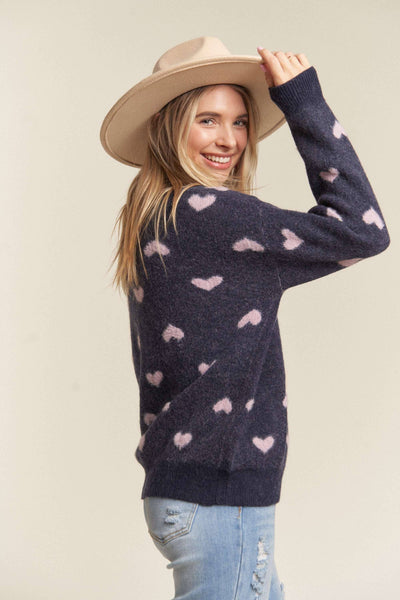 This charming sweater top is crafted from a blend of 85% polyester and 15% acrylic, ensuring a soft and comfortable feel. Its all-over heart pattern adds a touch of playful sweetness, perfect for a casual yet cute look. The relaxed fit and cozy material make it an ideal choice for layering or wearing on its own. This garment offers both style and comfort, embodying a delightful and approachable aesthetic. 85% POLYESTER 15% ACRYLIC *Plus size *Heart patterned sweater knit *Lovely, Cutesy heart *Comfy, Warm, Daily wear Actual product color may vary from the images shown. Every monitor or mobile display has a different capability to display colors, and every individual may see these colors differently.