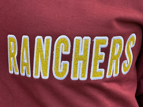 Step up game day with our glitter Rancher angled team sweatshirt.