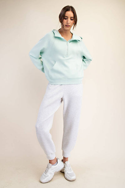 A Modal Poly Span Scuba version of our bestselling French Terry Hoodie. Crafted from a luxurious, silky smooth fabric, this cropped jacket is super soft and lightweight, providing a delightful sensation against your skin. The oversized fit exudes casual chic, while the half zipper closure adds a stylish touch. With a convenient kangaroo pocket and thumbhole details, this jacket effortlessly combines fashion and functionality.