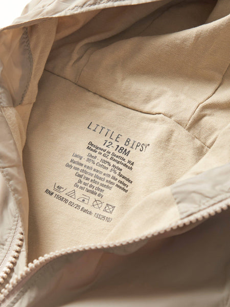Built for play, designed for comfort. Our kids’ windbreaker in a soft Mushroom hue is made with a buttery soft finish and clever details to keep your little one comfy, dry, and on the move—rain or shine. Perfect for playground adventures, park strolls, or just running wild—this windbreaker is the soft layer they’ll actually want to wear.