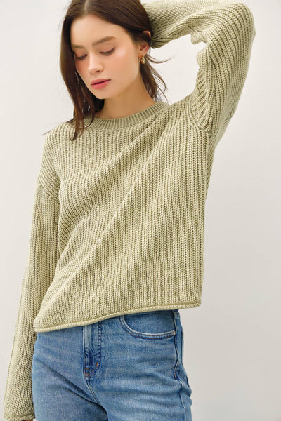 * CHUNKY KNIT SWEATER * ACID WASH * ROUND NECKLINE * DROP SHOULDER * LONG SLEEVES * ROLLED DETAIL ON CUFFS AND HEM * RELAXED, BOXY SILHOUETTE * RAW SEAM DETAILS * FALL WINTER AUTUMN * EVERYDAY BASIC CASUAL * COZY WARM