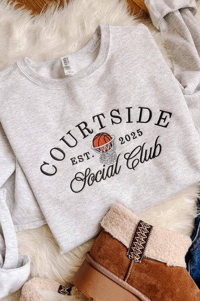 Courtside Social Club Embroidered Sweatshirt - Ash Grey