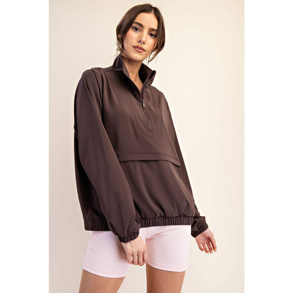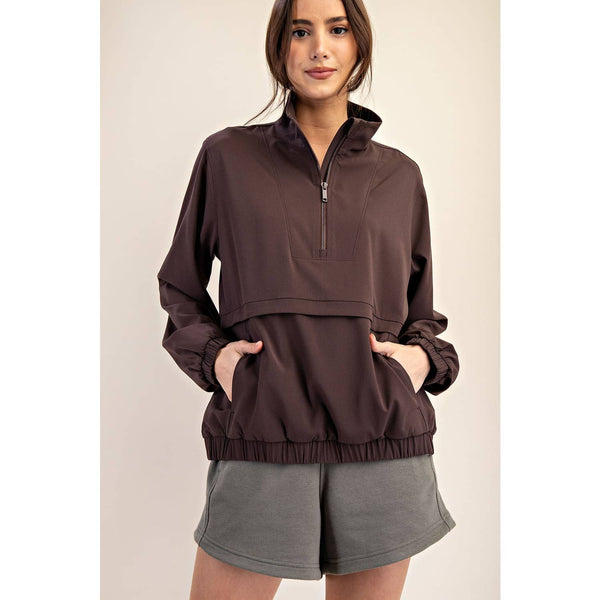 CRINKLE WOVEN QUARTER ZIP ACTIVE JACKET - Espresso