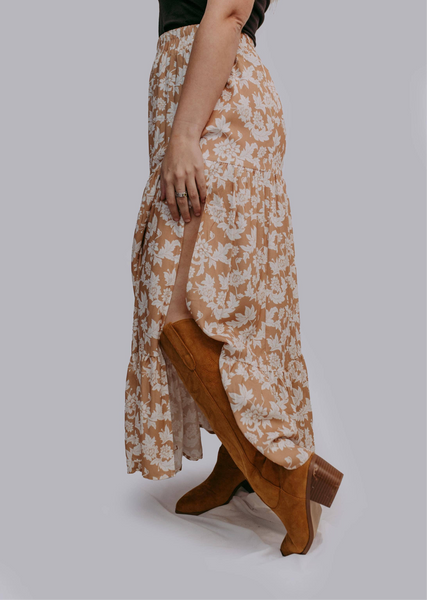 -Maxi Skirt -Floral Print -Side Slit -Neutral -Spring