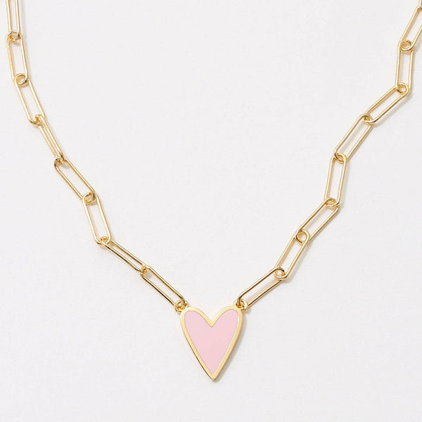 Heart Enamel Pendant Gold Dipped Paper Clip Chain Necklace