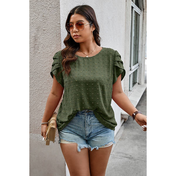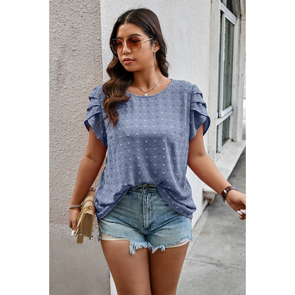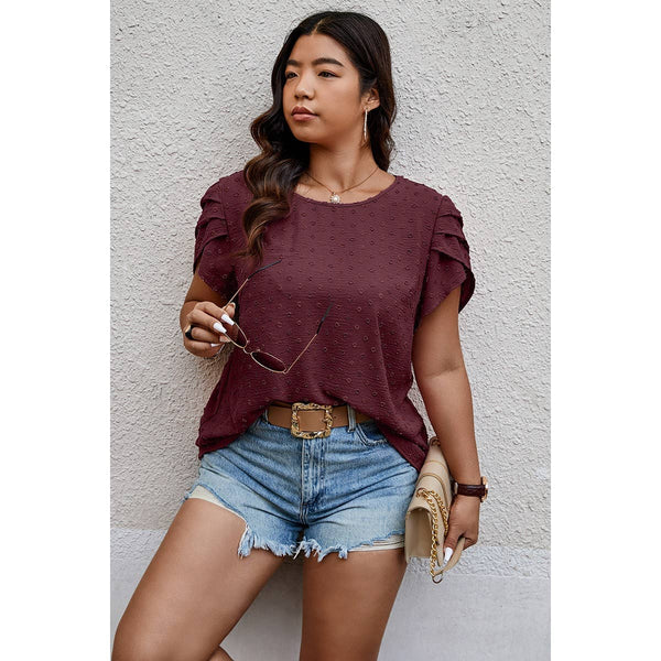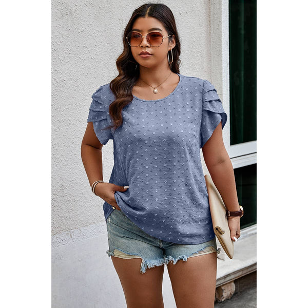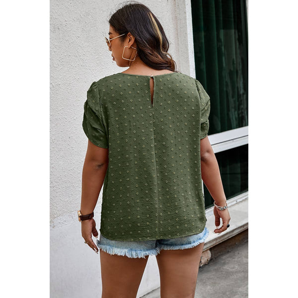 Plus Size Solid Swiss Dots Short Sleeve Blouse