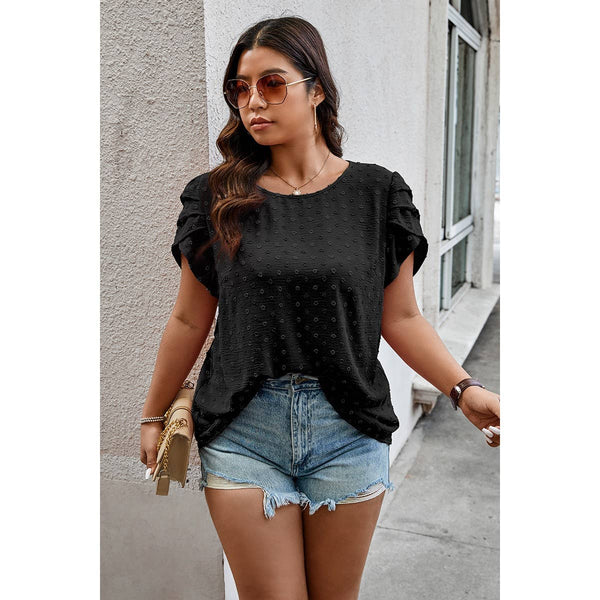 Features: Plus Size Solid Swiss Dots Short Sleeve Blouse